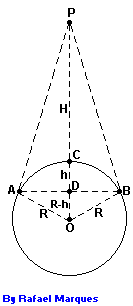 Substituindo OB = R , OP = H + R OD = R h (olhe com atenção especial a figura acima para concluir isto), teremos: